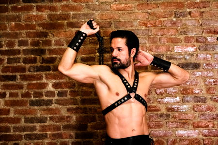 This image captures the muscular form and poised pose of OnlyFans model, Dominus Eros. His toned body and confident expression suggest a dedication to fitness and an air of sophistication. He is seated on the ground, leaning forward with one hand resting on his knee. His attire, or lack thereof, adds to the allure of this scene. As an OnlyFans model from NYC, Dominus Eros's image likely contains more revealing content in his exclusive subscription series. This photograph offers a taste of his well-defined physique and the intensity of his presence.