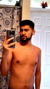 Eduardo, a gym-buff model, showcases his well-toned physique in this candid bathroom shot. His reflection on the mirror captures his confident stance and chiseled abs.