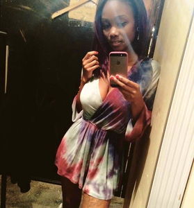 The model Eirenne SG strikes a pose in front of a mirror, wearing a vibrant tie-dye dress with a plunging neckline. The image captures her confident and trendy style, with the unique combination of tie-dye colors and the chic off-the-shoulder design. A perfect fusion of casual and edgy, this outfit is sure to make a statement.