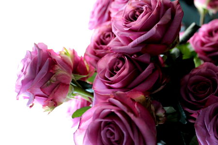 A bouquet of purple roses captured in a close-up shot, showcasing the delicate beauty of each flower.