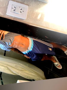 Javi10, a model from Argentina is seen in this bathroom mirror selfie. The photo captures his confidence and unique style. Shot with a black phone, the image showcases Javi10's signature poses and expressions that make him stand out.