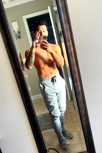Experience the comfort and style of FMA's gym attire, perfect for a post-workout selfie. 23 years old.