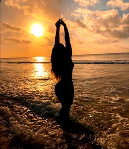 Georgina captures the serene beauty of coastal vistas, with her back to the camera she finds solace in nature.