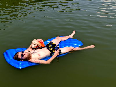 A hysterical moment captured on camera, OnlyFans model Goldie showcases his vibrant and lively personality. His tattoos and beard add to the unique charm he exudes in this candid shot. He's known for his light-hearted attitude and sense of humor that sets him apart from the crowd.