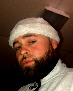 Austin111, an OnlyFans model, poses for the camera wearing a white beanie and a white jacket. The image captures a candid moment showcasing his unique fashion sense.