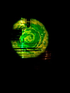 A bearded man with dreadlocks, wearing a black t-shirt and a cross necklace, standing in front of a colorful poster or artwork. His facial expression is humorous, with his mouth open as if he's shouting or singing. The background has psychedelic patterns resembling tie-dye.
