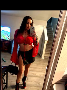 OnlyFans model Allison is captured in a stunning pose. She's 25 and exudes an irresistible charm. Her photo is a testament to her allure, taken from a high angle that showcases her entire body. She's wearing a red lingerie set that adds a pop of color to the image. Allison's confidence and poise make this photo truly captivating.