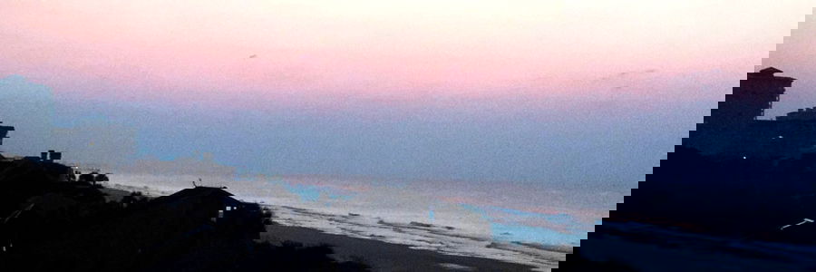 Catch a glimpse of the tranquil beach at sunset, with the city skyline in the background. A perfect blend of nature and urban life.