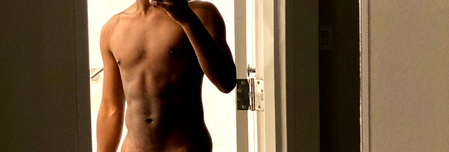 A fitness model from Orlando, Florida showcases his physique in the mirror of a bathroom. The image captures Zedd with a muscular build and is wearing a towel, possibly after or during a workout. This self-portrait gives us an inside look into his personal space.
