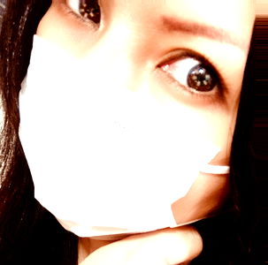 The image depicts an individual wearing a surgical mask, which is often used in medical settings. The person appears to be indoors and has dark hair. They are looking directly at the camera, capturing a close-up of their face with a neutral expression.