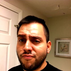 A bearded, young adult male posing indoors with a serious look on his face. He appears to be in a residential area, possibly reflecting or deep in thought. The image is well-lit and captures the individual's expressive nature.