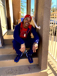 In this candid shot, the singer Senpai is captured sitting casually on the steps outside his home. He's dressed in a relaxed outfit, wearing sneakers and holding a beverage in his hand, perhaps enjoying a quiet moment before a performance. His expression suggests he might be reflecting on his journey as an artist or simply taking a break.