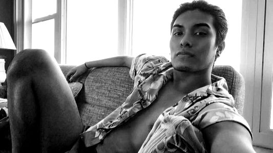 A young man exuding confidence in a modern hairstyle, with slicked back hair and a casual pose. Wearing a black t-shirt and sporting a necklace, he is the epitome of cool street style.