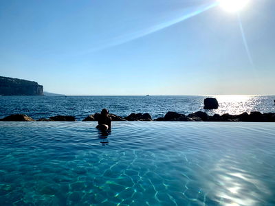 In an intimate moment, Erika9 shares her balcony space. She is seen from behind, wearing a black bikini, with a stunning ocean view. This image captures the essence of beachside relaxation and the allure of a model's lifestyle.