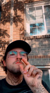Candid photo of Onlyfans model Jake enjoying a smoke on the street, with a cool attitude.