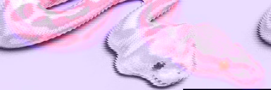 This image features a person wearing a snake model in a seductive pose. The model appears to be crafted with attention to detail, showcasing the intricate design and pattern of the snake. The purple background adds a striking contrast, making the snake stand out.