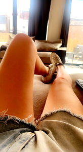Kate from OnlyFans captures a laid-back moment in a comfortable living room, lounging with a glass of wine. Her legs crossed and wearing a casual outfit, she embodies the relaxed vibe.