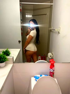 Kayla is an OnlyFans model based in Fort Lauderdale, Florida. In the image, she is seen capturing a selfie in a mirror after getting ready for the day. She is dressed in casual attire and has striking long hair.