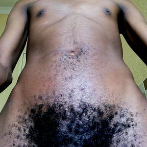 Johannesburg-based Kayn'Sc, an adult entertainer, flaunts his black body hair in this intimate and revealing shot. His muscular physique is accentuated by the black curls that adorn his torso, arms, and legs. The photo captures a moment of raw and unfiltered human beauty. Please note, this image contains explicit content.