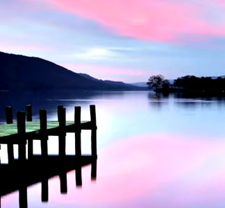 Kelly Lynne captures the tranquil beauty of a sunset over a lake, with a peaceful wooden dock reflecting in the water. The warm hues of the sky blend harmoniously with the cool tones on the water surface. This image conveys a sense of calm and relaxation, perfect for those seeking a quiet retreat in nature.
