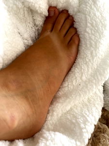 In this comforting image, Kenz appears to be enjoying a calming foot massage. The scene is set against a cozy blanket, emphasizing the sense of relaxation and tranquility. The image captures an intimate moment, hinting at a potential OnlyFans content for those who appreciate gentle care in private settings.