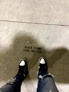 Milwaukee model Davian Andrade poses confidently, showcasing his modeling skills and unique style. He is seen donning a face mask, which adds an intriguing element to the photo. His hand is casually placed on his hip, suggesting a relaxed yet assertive demeanor.