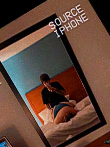 The image captures an intimate moment, featuring a person taking a selfie in their bedroom. The individual appears to be engaged with the device, which is clearly visible as an iPhone. The room has a blue wall and a white comforter, suggesting a casual and comfortable setting. The model's name, Ky&NikolePhatz, can be seen at the bottom of the image. This snapshot seems to tell a story of modern communication and personal privacy.