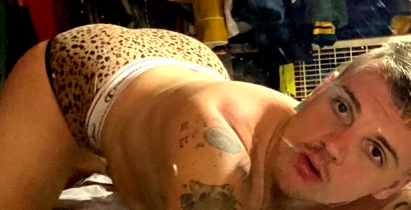 A provocative and steamy photo of OnlyFans model Leaux Leaux from Pontiac, MI, taking a selfie in the bathroom mirror while naked. 20 years old male.