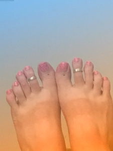 New Zealand's OnlyFans model Lenora showcases her well-pedicured toes with a chrome anklet. The image captures the elegance of her feet in a close-up shot.