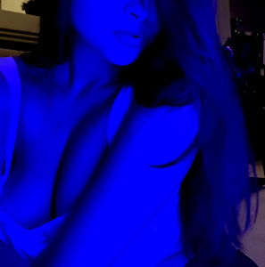 Join Lizzy on her OnlyFans for exclusive content. She's a sultry vixen who knows how to pose and tease in a purple light setting.