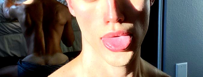 Los Angeles, CA based model Lucas showcases his toned physique. The image captures him from the chest up, flexing in front of a mirror while wearing headphones, demonstrating his commitment to fitness. His lean muscles, defined abs, and well-defined biceps hint at a disciplined lifestyle dedicated to health and wellness.