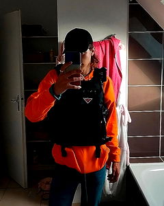 This image features Lucile, an OnlyFans model, dressed in a tactical vest. She is holding a phone in her hand and seems to be taking a selfie. Her pose and attire suggest she might be interested in law enforcement or tactical roles.