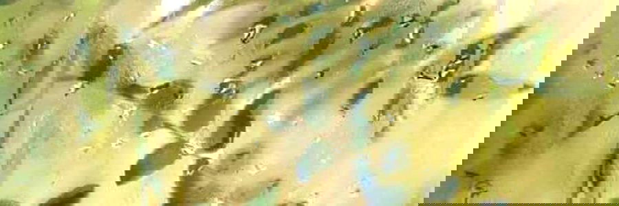 A whimsical scene of a rainy day, with droplets of water capturing the light against the backdrop of a yellow and green patterned fabric. The overall mood is one of introspection and melancholy.