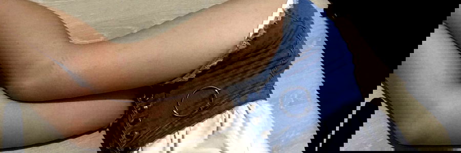 A candid moment of a Bangkok-based OnlyFans model, Makeyoursday, capturing their laid-back style. They are lying on a white surface with their legs crossed and wearing a denim skirt paired with a cropped top. The photo exudes a relaxed vibe that matches the branding of the model's platform.