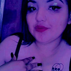 Mariel, an attractive young lady with tattoos and a vibrant personality. She is seen posing in a bedroom setting with her unique style of makeup and fashion. Her pose suggests confidence and elegance.