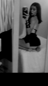 In the image, a young woman is wearing a black lingerie and a pearl necklace. She is sitting on a bed with her legs crossed. Her expression suggests a sense of confidence and self-assurance. As an OnlyFans model named Mar Martinez from Buenos Aires, Argentina, she showcases a strong presence in the adult entertainment industry.