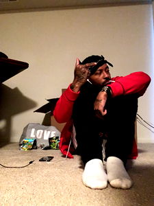 An influencer known as Masterking2u, also known as FetishGod, is captured in a candid moment. In the image, he is seated on the floor with his hand on his head, appearing thoughtful or perhaps weary. He's dressed casually and seems to be indoors. The background suggests a home setting, with personal items scattered around. His gaze is directed off to the side, indicating that he might have noticed something out of frame.