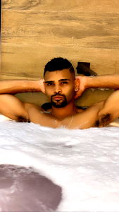 Matheus Bernardes is captured enjoying some leisure time. His toned body suggests he takes fitness seriously, and his relaxed posture indicates a moment of relaxation after a workout or a busy day. He's in the midst of a bubble bath that adds an element of luxury to the scene.