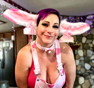 Millie Moo, a vibrant and unique model from Southern California, is known for her distinctive sense of style. She is seen here in a playful pose, wearing a pink cow costume that adds a touch of whimsy to the image. Millie's OnlyFans platform showcases her creativity and confidence, making her stand out in an ever-growing industry.