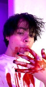 Professional male model in a striking pose against a simple background. The image is clear, highlighting the subject's unique features and style.