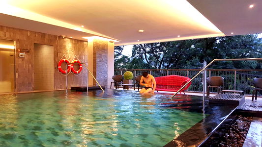 In this exclusive photo, model MR.STC is captured in an indoor swimming pool, striking a pose with confidence. The pool setting offers a modern and luxurious backdrop for the model's swimwear showcase. This image captures the essence of leisure and fashion, providing a glimpse into the glamorous world of modeling.