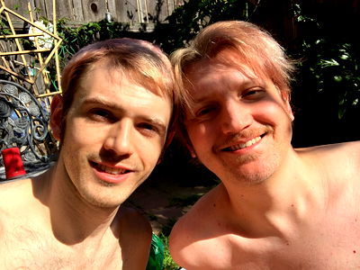 MudkipMan420, a popular model on OnlyFans, is featured in this video. He can be seen embracing another man with affectionate kisses. The setting appears to be outdoors during the daytime. The interaction suggests an intimate and close relationship between the two individuals.