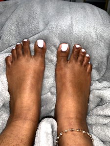 This image captures Nayya, a beauty influencer showcasing her pedicure without toenails. She has chosen a clean and minimalist look with neutral colors. The toes are painted in a natural nail color that matches the skin tone, accentuating the overall elegance.