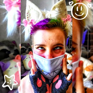 NekoxSan, a popular OnlyFans model, showcases her vibrant and fashionable look featuring cat ears, rainbow eyeshadow, and unique makeup. Her playful expression and cheerful pose make the image stand out.