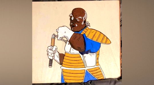 This is an image of a customized figure from the animated show, Dragon Ball Z. The figure, named Cpt. Pullout, is a Gastonia, NC OnlyFans model, and is depicted in a unique pose holding a weapon. The artwork captures the essence of the character and adds a personalized touch with its blue background, making it a one-of-a-kind collectible for fans of the series.