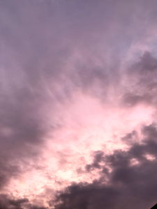 This image captures the stunning spectacle of a stormy sky with purple and pink hues, hinting at the drama that often precedes or follows an impending storm. The clouds are thick and layered, suggesting a powerful weather event. There is no clear indication of human presence or specific location in this photo.