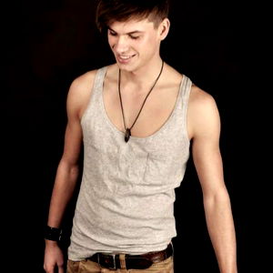 A young male model with a chiseled physique and a casual, edgy style. He is posing confidently in a grey tank top.
