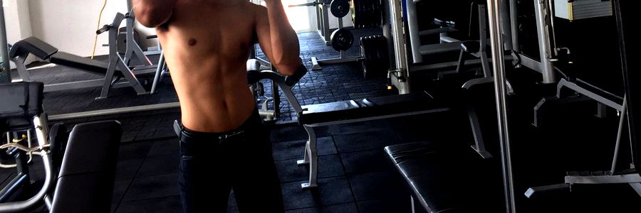 A male fitness model poses in a gym. His shirtless torso shows definition and dedication to health. The gym's ambient lighting highlights the details of his physique, emphasizing the importance of regular exercise and healthy lifestyle choices.