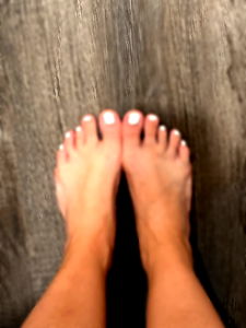 This is a close-up image showing a person's feet with visible toe nails. The toes are manicured and the overall condition suggests someone who takes care of their feet. The skin tone and texture indicate an adult aged approximately 35 years old. This image might be associated with content related to foot care, nail care, or personal grooming.
