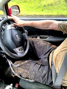 An image of a muscular man with tattoos, captured in a candid moment. He is wearing athletic clothing and appears to be indoors. This photo captures his body language and the ambient lighting, adding an air of casual realism.